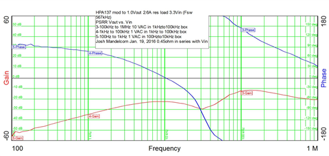 図2: 変更を加えたTPS 40041 EVMのPSRR(2.6A負荷)