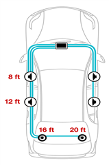 圖 1:連接典型六揚聲器汽車音訊系統所需的銅線長度