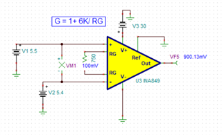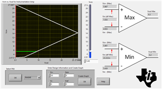 Enter the supplies, gain, reference voltage, and common mode voltage, and then click "OK". I created the following plot for you, but I changed the input common mode voltage from 2.05V to 5.45V. You can see from the image below that the allowable input differential voltage range is 22mV to 1.03V, to yield a linear output of 0.2V to 9.3V.