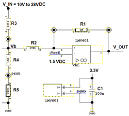 But practically, Vout is triggering high when Vin is 26V. What can be reasons for it ? even with tuning R2 to 22k1, results is same. Which components can be further tuned ? Also, can I use LM393 comparator inplace of LMV601