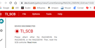 I have an INA236EVM, INA237EVM and TI-SCB and trying since long time get it running. The concept of TI-SCB GUI with Cloud connection is garbage. Its absolutely unclear how it works and the documentation on Ti ist absolutely useless.