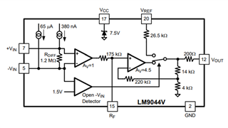 At VIN+ open, Vout ~5V (instead of ~2V in OK IC sample) |