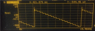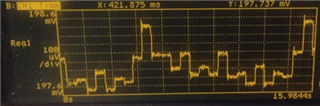 Here are the traces I'm seeing. Since the two plots were not taken at the same time, it is important to note that the highest point in both charts correspond to the same point in the waveform and that this mean the second trace is delayed from the first by one major division.