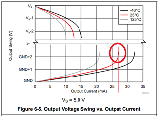 Is it correct to assume that the maximum output source current at room temperature is about 27mA when VS=5V and maximum swing?