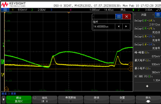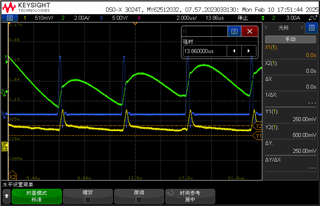 Waveforms (yellow: PV1_IL, connected to INA241 OUT; Green: actual IL ; Blue: DRV1_L, drive signal. All circled in red above)