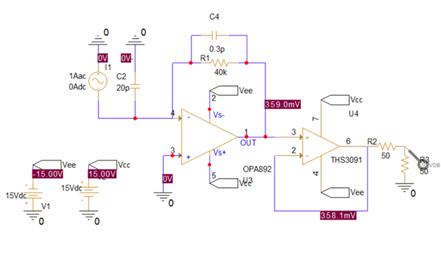 I am currently designing a TIA circuit with a bandwidth of approximately 10 MHz. The circuit is as follows: