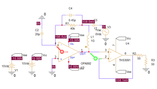 However, I encountered an issue where, to achieve the maximum voltage output of the OPA892, I need approximately 260 mA of current in a 50-ohm system (assuming a 13V output). To address this, I added a buffer circuit.