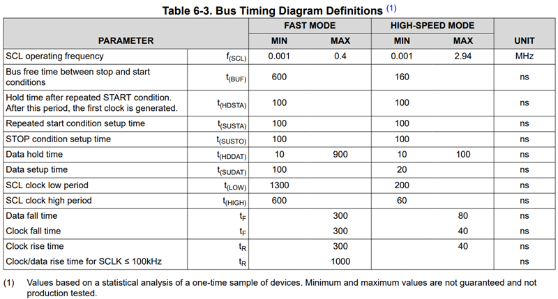 - Pull-up resistors for SDA and SCL are properly connected and within specification.