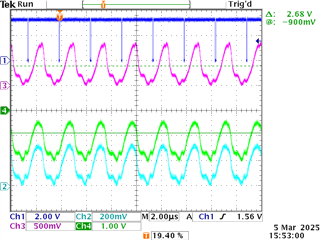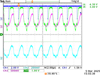 examples attached. In these, the input to the VCA824 is the cyan trace, and the output is the green trace.