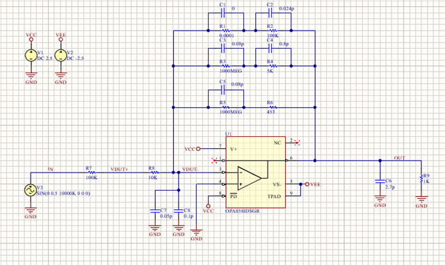 Hi, I´m doing simulations with the OPA858 device and I am getting some peaks in the frequency responce that I was not expecting. Then I moved to do some basic simulation to try to obtain and verify the operational parameters and there is some variations in the frequency response that i was not expecting.