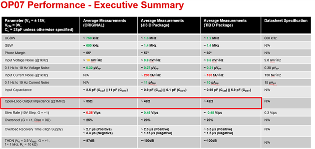 There is PCN issued in OP07 product, and the BW and open loop output impedance are changed slightly due to the FAB change, see the table below.