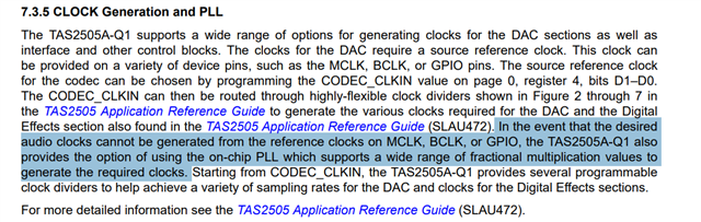 in my application, TAS2505A-Q1 will be driver by AM62P54, due to AM62P54 no such clock out to TAS2505A-Q1, does this clock input must have? if can be not used, how to handle this PIN? connect to GND/VCC?