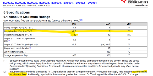 So is it ok that we are exceeding -300mV as per abs max if the current though (IN-) is limited below 10mA?