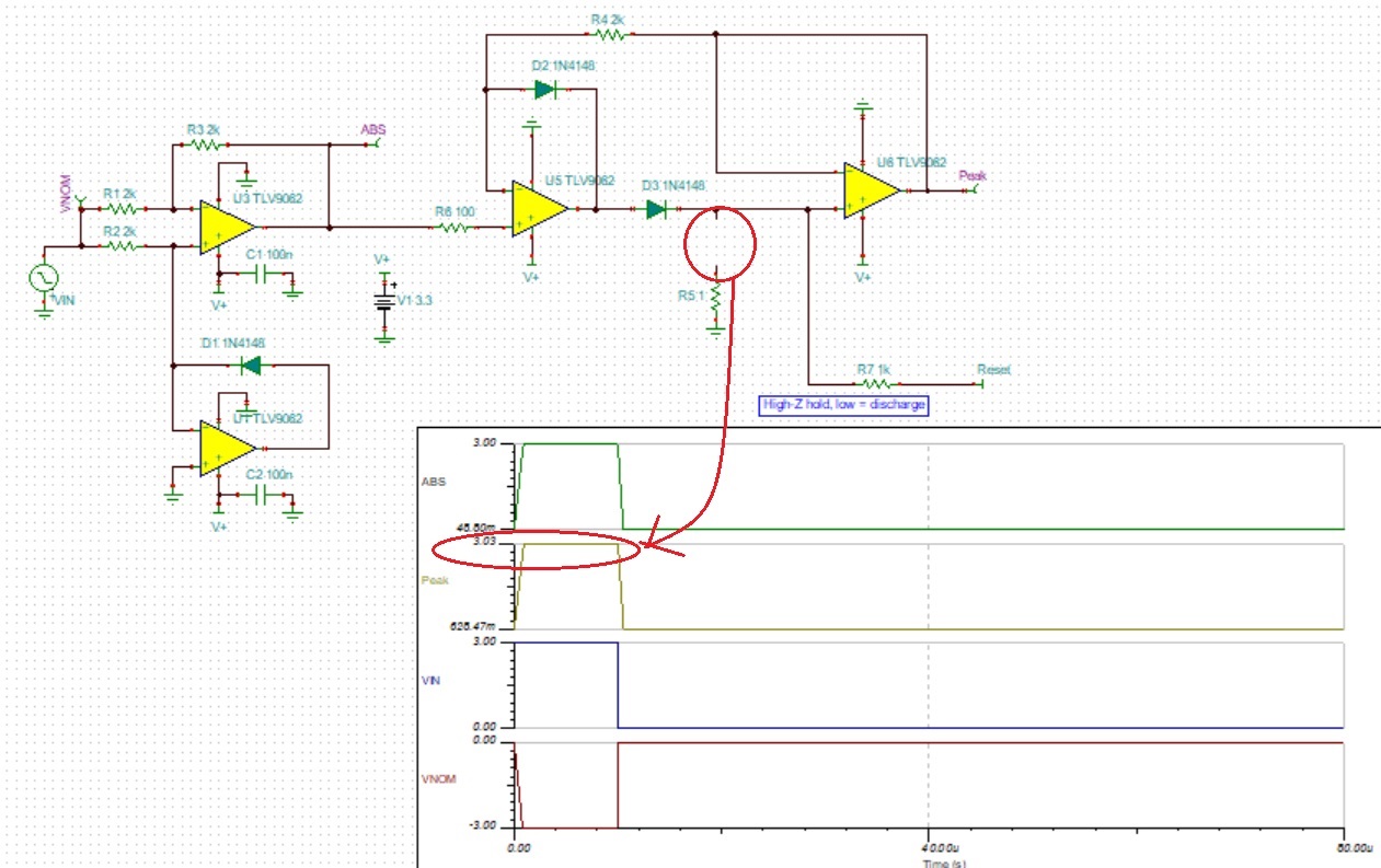 Could you please help me understand why the output doesn’t match the input peak voltage and how I can correct this behavior?