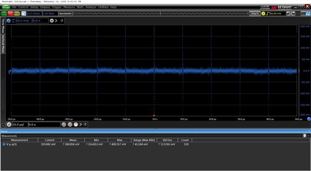 The red waveform represents the output of U11A. To reduce the Phantom Current, i have changed the resistors R51 & R54 to 100E and R50 & R55 to 10K with 1% tolerance and i got good improvements which is given below.