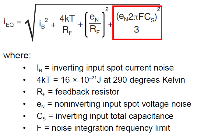 Currently I am designing a low noise high speed TIA, and I am reading one of the TI documents -- "Transimpedance Considerations for High-Speed Amplifiers", in the part of noise considerations, I encountered an unfamiliar term in the input referred noise current.