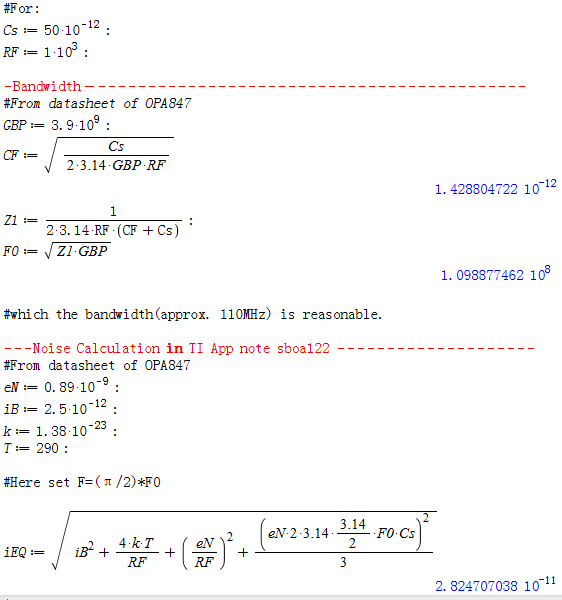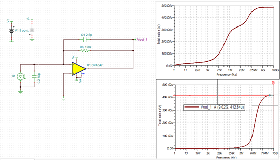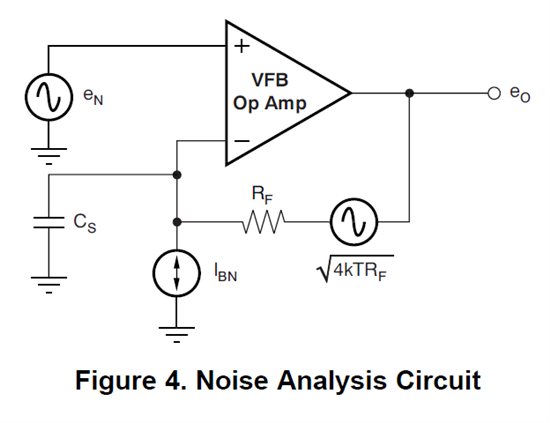 Apart from that, in this noise analysis, no feedback capacitor is used. If a feedback capacitor is added parallel to the feedback resistor, how would the noise current be in this case?