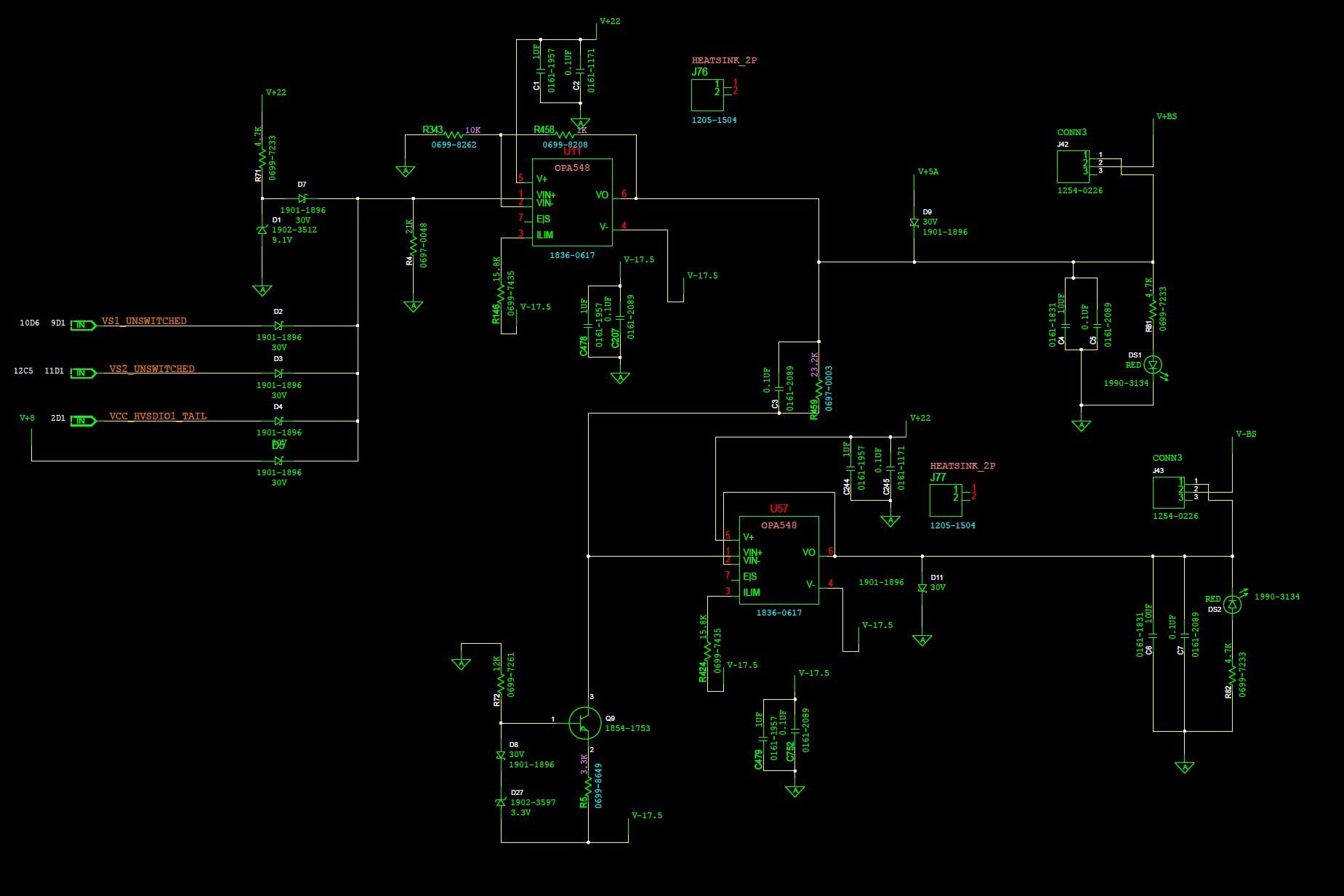 I am using two OPA 547s to provide a boot strapped power supply. The supply voltages are +22V and -17.5V. The OpAmps are used to provide a bootstrapped power supply that are within 24V of each other(The negative will track the positive and stay 24V below it at all times, so when the positive is at +10V the negative will be at -14V, when the positive rises to +20V, the negative will rise to -4V).