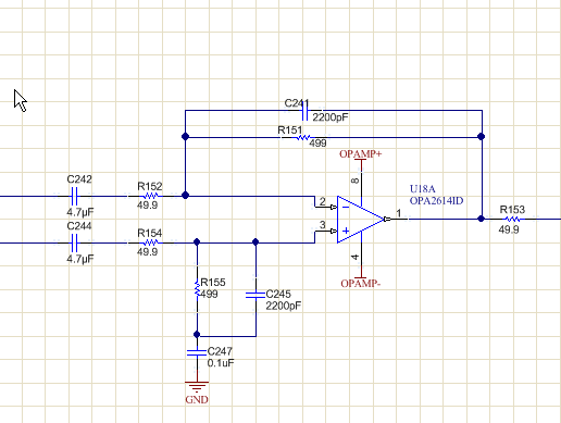 I want to use the OPA2614 as a single-supply, differential-mode amp in an audio application. Below is my circuit, where the "OPAMP-" supply could be ground instead of -5V. I don't know how to bias the positive input terminal so I have tried C247. Does this make sense?
