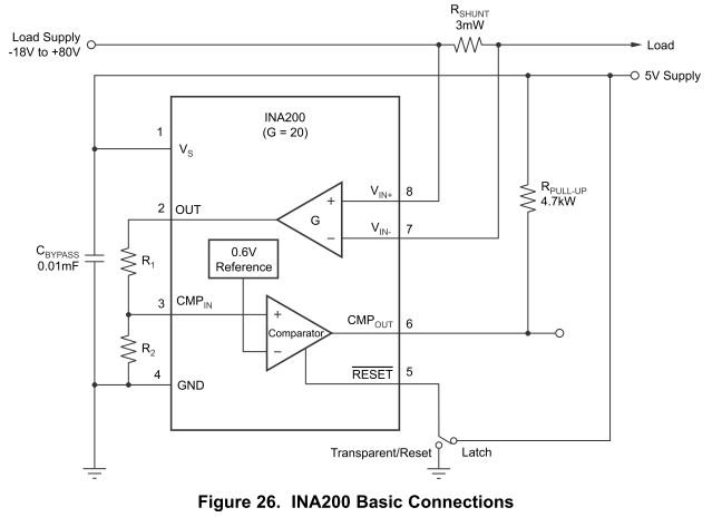 In our customer application, the "load supply" in the following schematic would be some kind of device which state could be undefined during power up. INA200 power supply is powered up first.