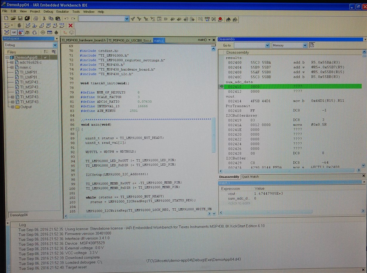 I checked on the integrated circuit page LMP91000 (http://www.ti.com/product/LMP91000/toolssoftware) that there is a link (http://www.ti.com/lit/sw/snac032/snac032.zip) providing 4 examples, and the code example demo-app04.
