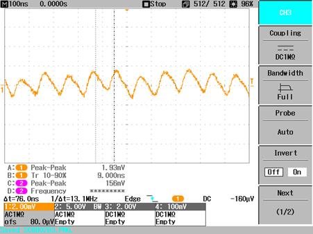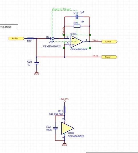 OPA365 oscillates, with kind of saw tooth @ 9MHz. See scope Plot below. Besides this oscillation the circuit works correctly.