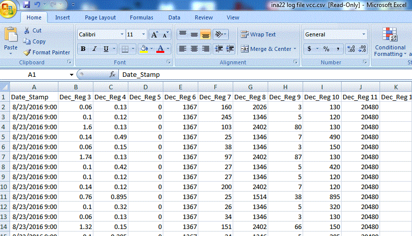 Would you pls advise the CSV data format coming from the INA220 EVM's data log function? How to read it?