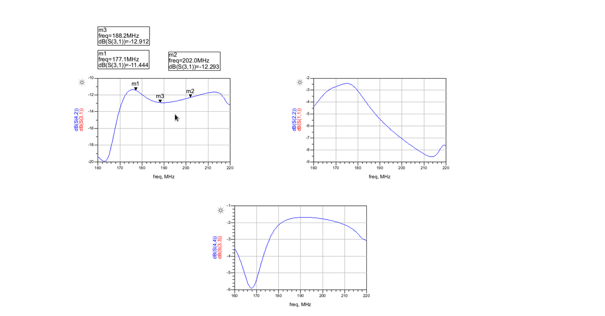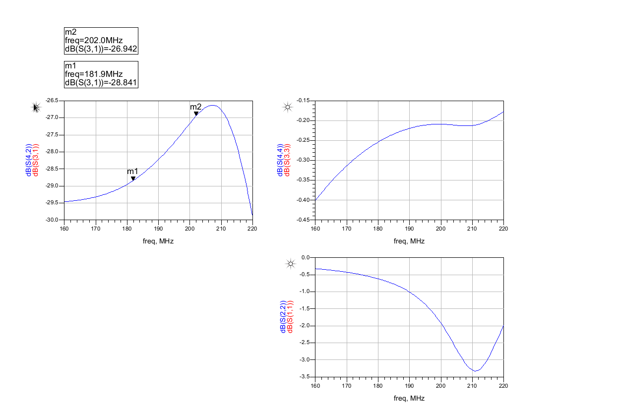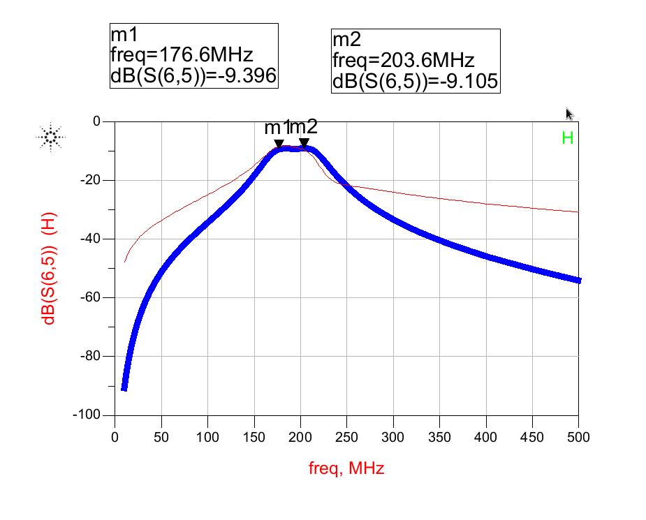We have found that simulated filters shift in bandwidth when built on a PCB. To compensate for this it is best to design the filter to have 5% to 10% higher frequency than desired.