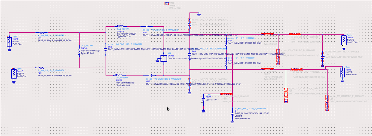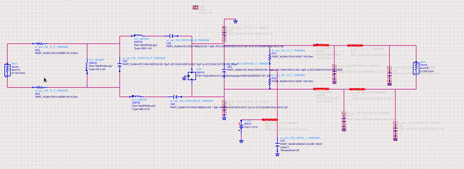 The difference between these two schematics is the way i kept the terminations. In one I have used separate terminations (50 Ohm input and 100 Ohm output) for all the four ports and in the other I have used one termination for input (100 Ohm) and one for output (200 Ohm) differential pair.