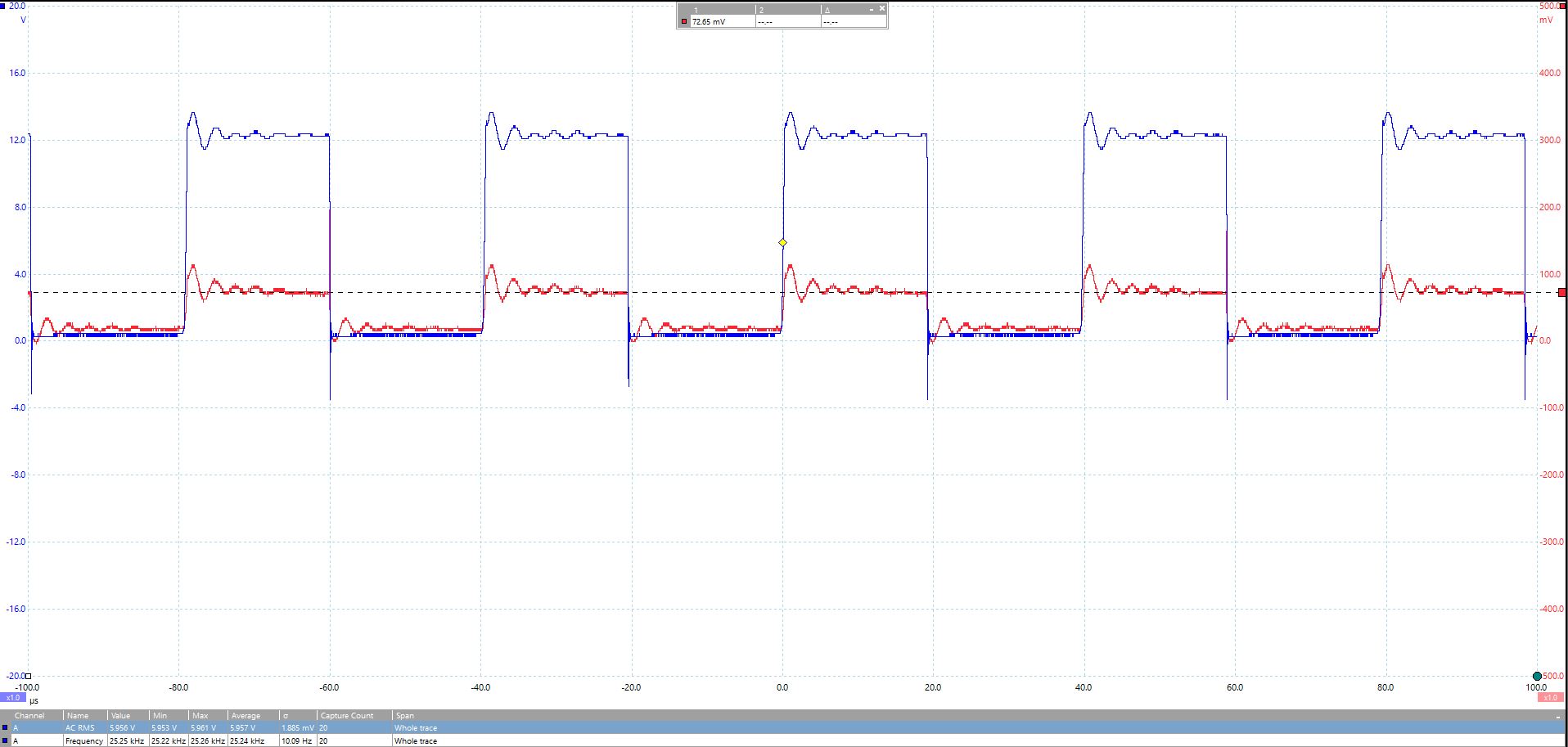 Screen shots are below. Blue is pin 6 (output) to GND, red is pin 7 (flag) to ground).