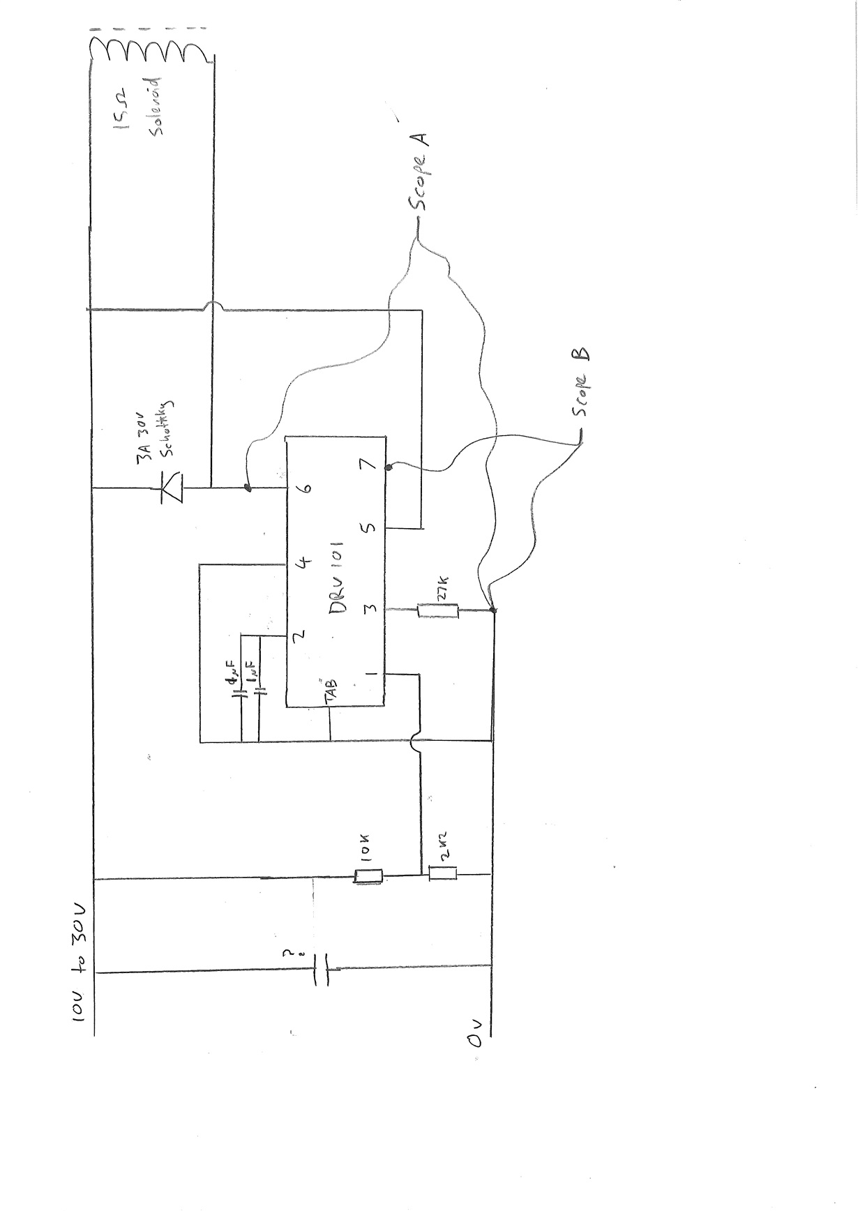 I am using a DRV101 to drive a 15 ohm solenoid connected as shown below.20160912175002176.pdf