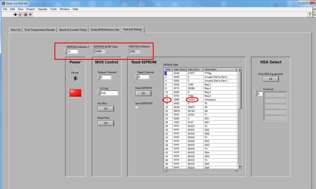 After I have went thru the normal calibration and passed I had the understanding that the S/N (as assigned by Multical), Date Code, and Model number are programmed in the companion EEPROM the PGA309 system board. My board is using 16K EEPROM the same as being used in the round PGA309 PCBA reference design. Checking at address 140, 142, and 144 un get