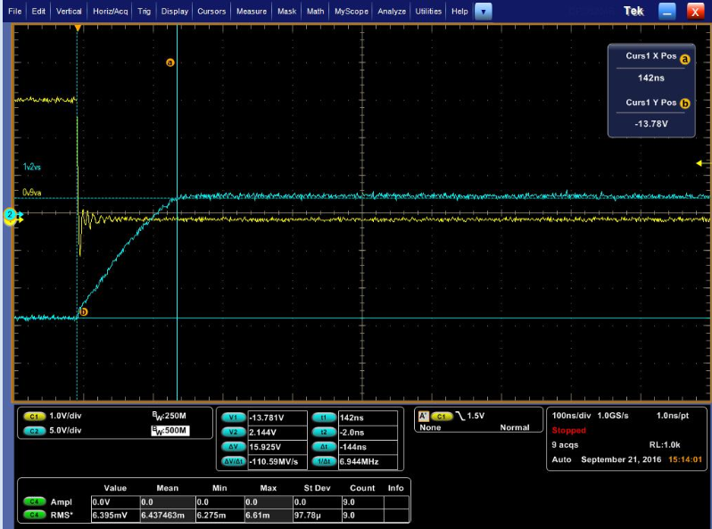 The input signal is a 3.3V switching signal,VCC+=5.4V and VCC-=-15V.