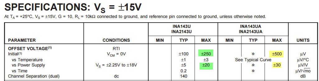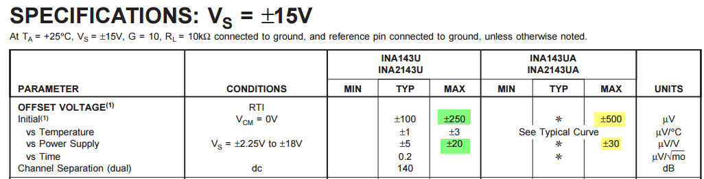 for INA2134UA are shown " * ".