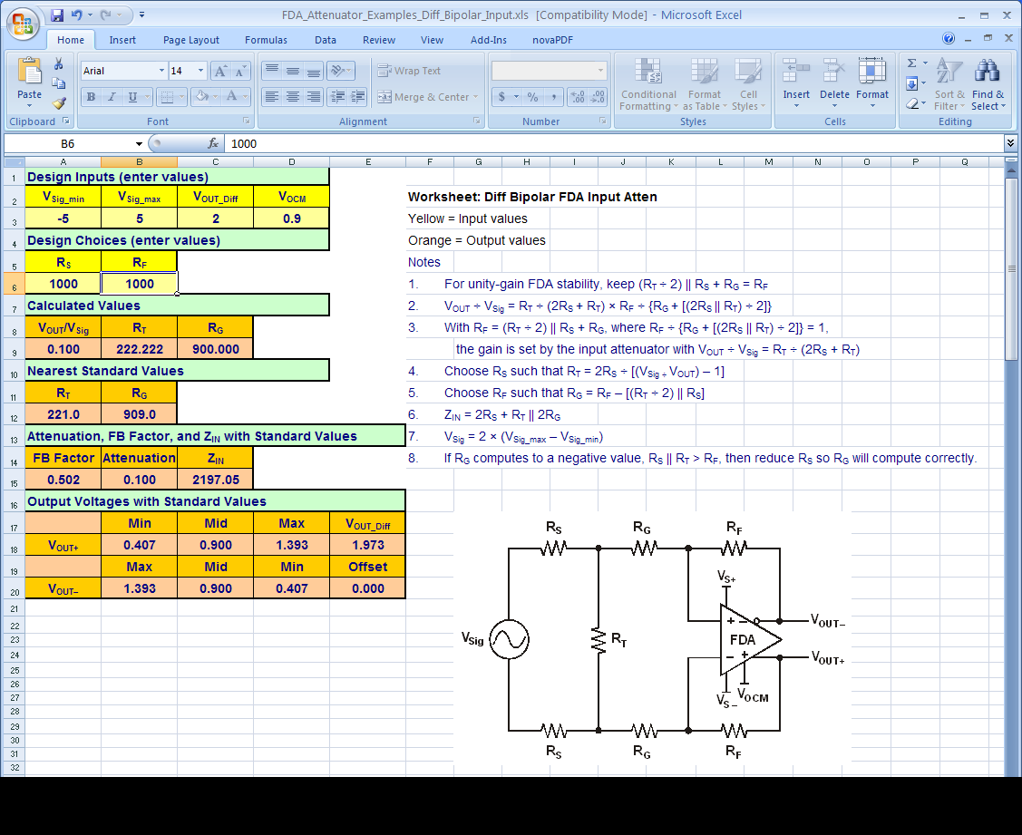 4) The resistor values are Rf = 1K, Rg = 909E, Rt = 221E, Rs = 1K.