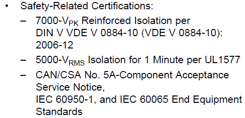 AMC1301 datasheet show that 5000Vrms for 1minute