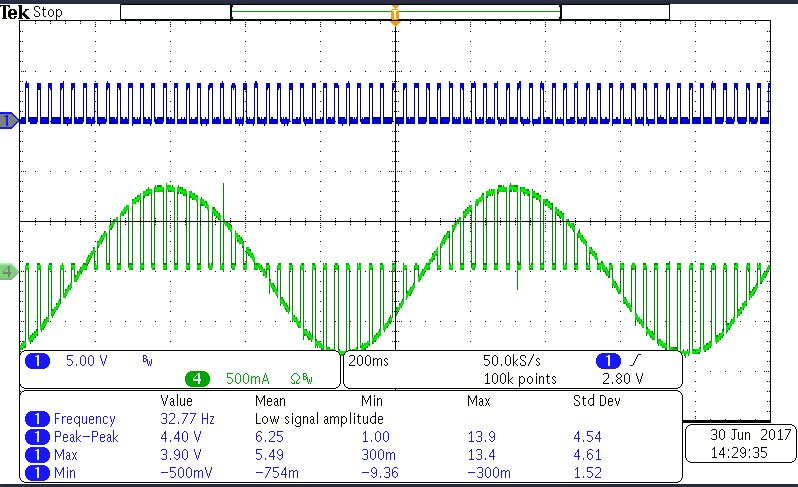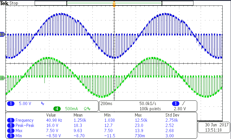Figure one. Chanel one as output voltage, Chanel four as output current