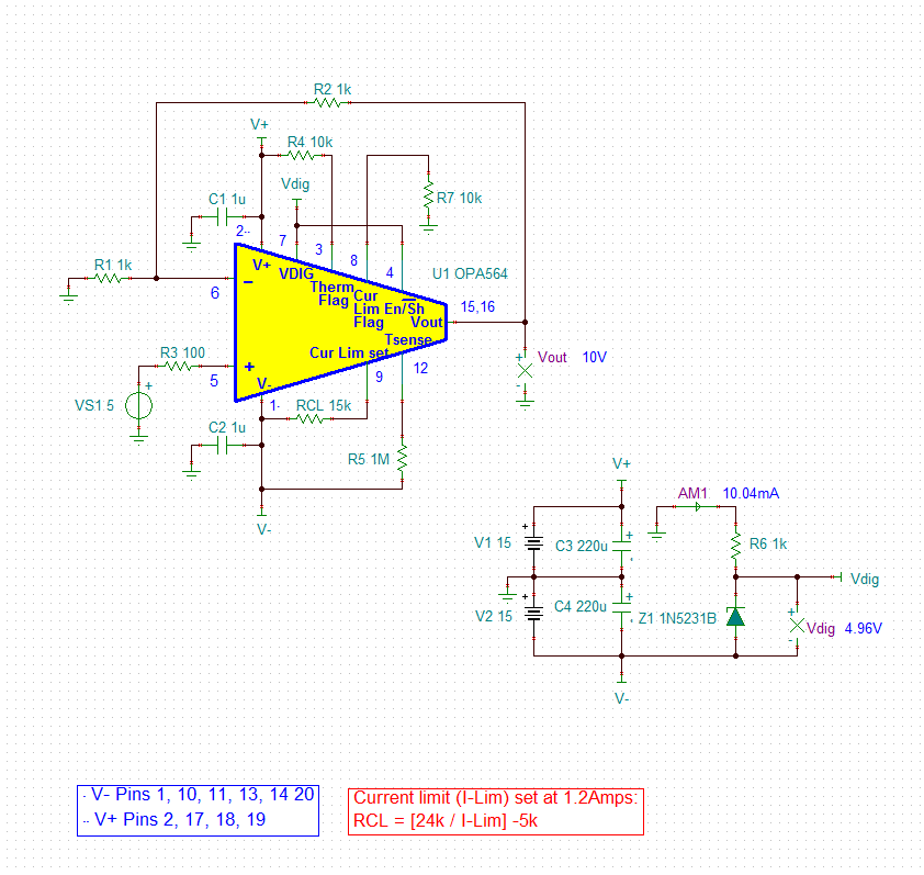I currently use opa564 with no issue, I use +/- 12VDC for the Vs and -vs.