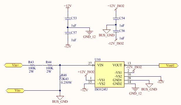 we are developing a DC/DC converter with switching frequencies between 100 and 200 kHz. We are measureing an output DC voltage at 650 to 800V with ISO124. This is the input scheme: