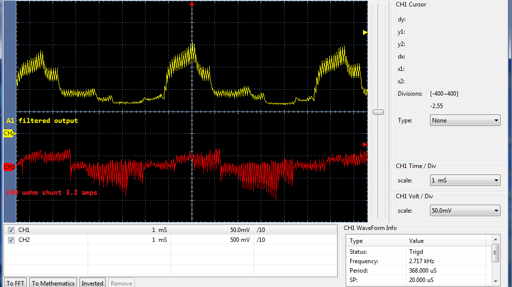 Idle mode leakage across shunt, INA output signal inverter via clean linear 80V source filtered 28000uf DC. The INA feeds from 3v3 LDO after 5v buck switcher via isolated linear 24vdc.