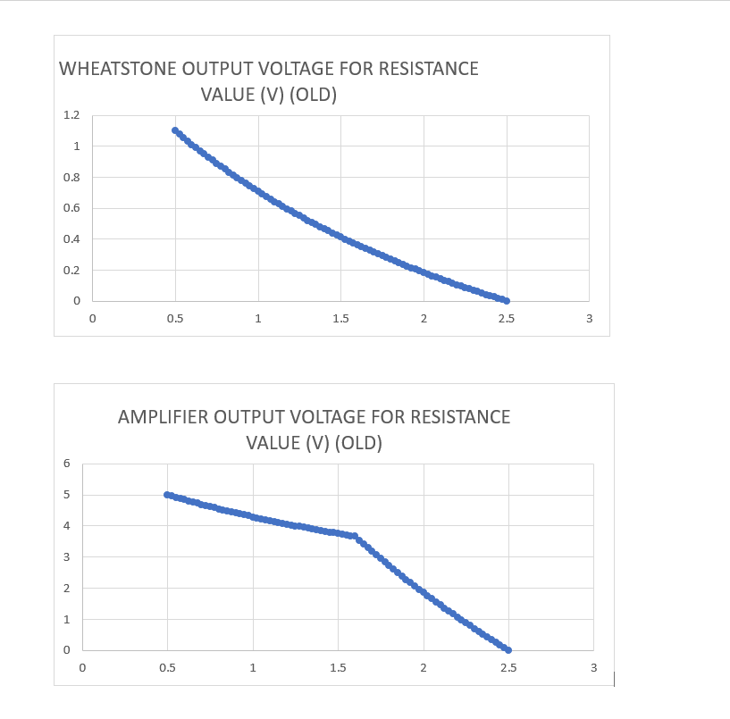 Respected Sir /MadamI was using INA333 to amplify the output from Wheatstone bridge. The x axis in both graph represents the resistance value in kohm and y axis represents voltage value from Wheatstone bridge and amplifier in volts. INA333 amp supply = 5v; gain =10; Rg=11kohm. The output of Wheatstone bridge is linear but not the amplifier output. what’s the reason for it?