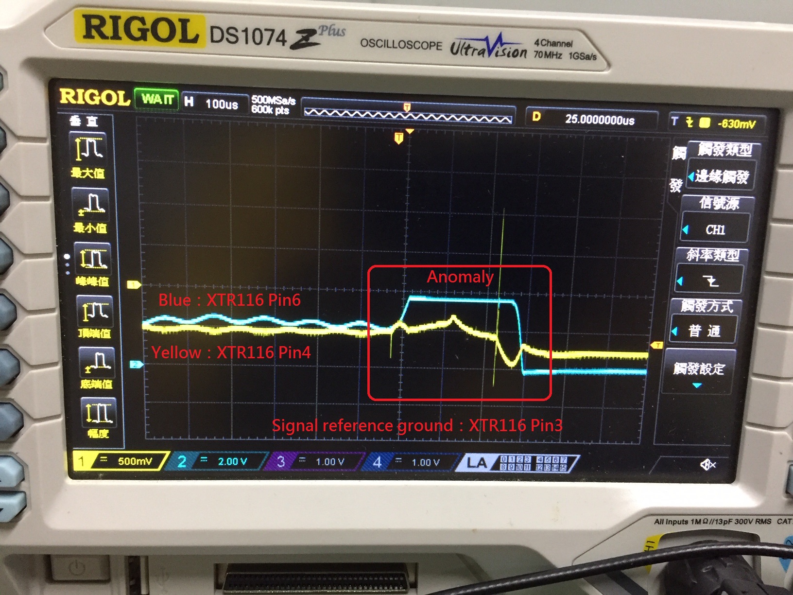 I think it may over current protect but don't know how to happen. I also confirm the supply voltage is above 7.5V, you can reference waveform. Could you tall me how to resolve?