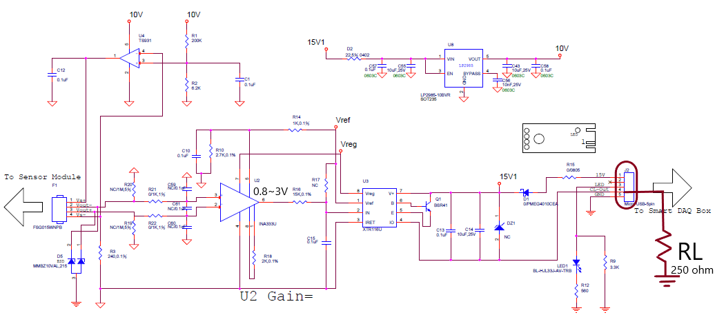 Pls reference below circuit, this circuit is work normally and the output voltage (VRL)= 5V (20mA*250ohm). If I swinging the Micro-USB cable, the voltage will increase to 7V and will latch till re-plugin this cable.