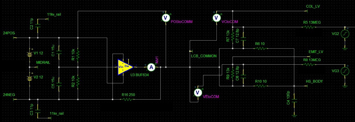 In this circuit, the INA188 inputs are fed from a high voltage (high impedance - 13Mohm) differential divider.