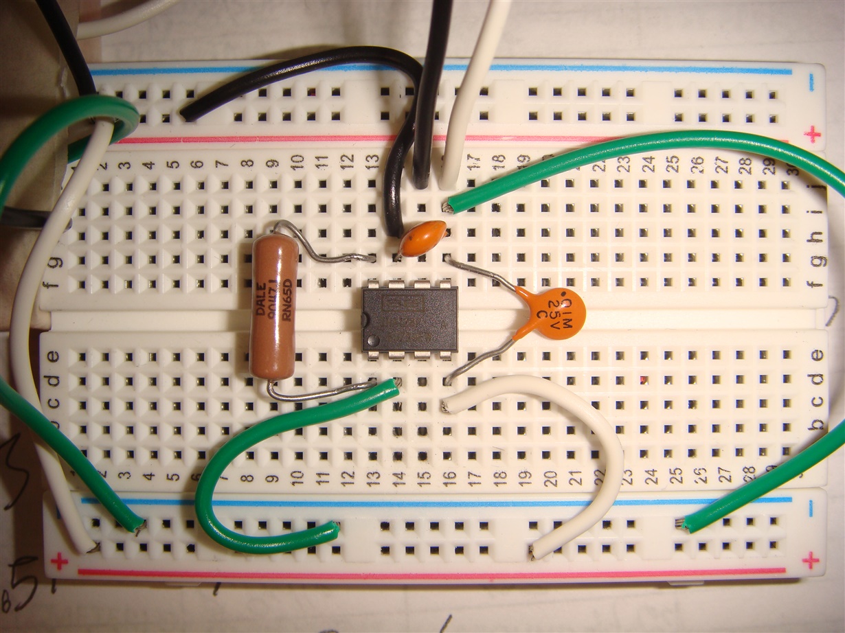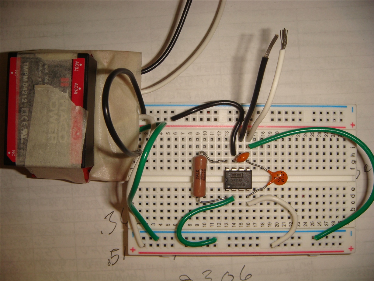 Also the black/white wires in the upper area of the picture are where i am measuring the output. The input signal wiring is not shown, but is across terminals 2 and 3(14 and 15 on the breadboard) if that is not obvious.