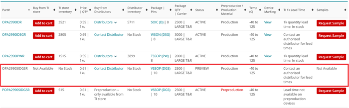 Could you please let us know RTME of OPA2990SIDGSR (VSSOP PKG)?