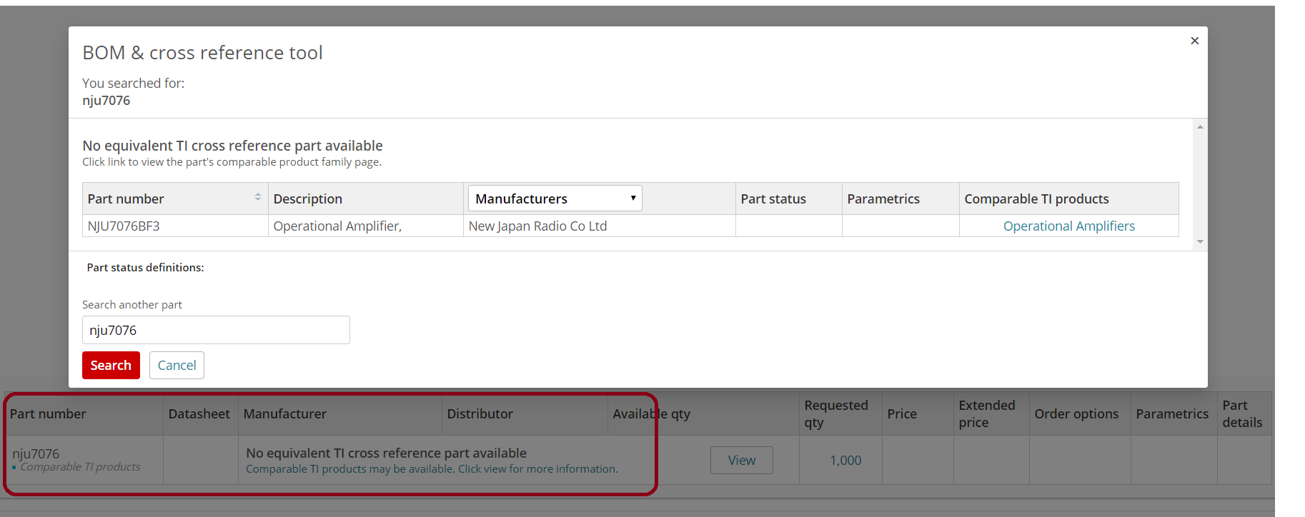 There's also a new tool available for comparing TI parts with competitor parts called the BOM Cross Tool. You may try this instead, although it's rather new and still being improved.