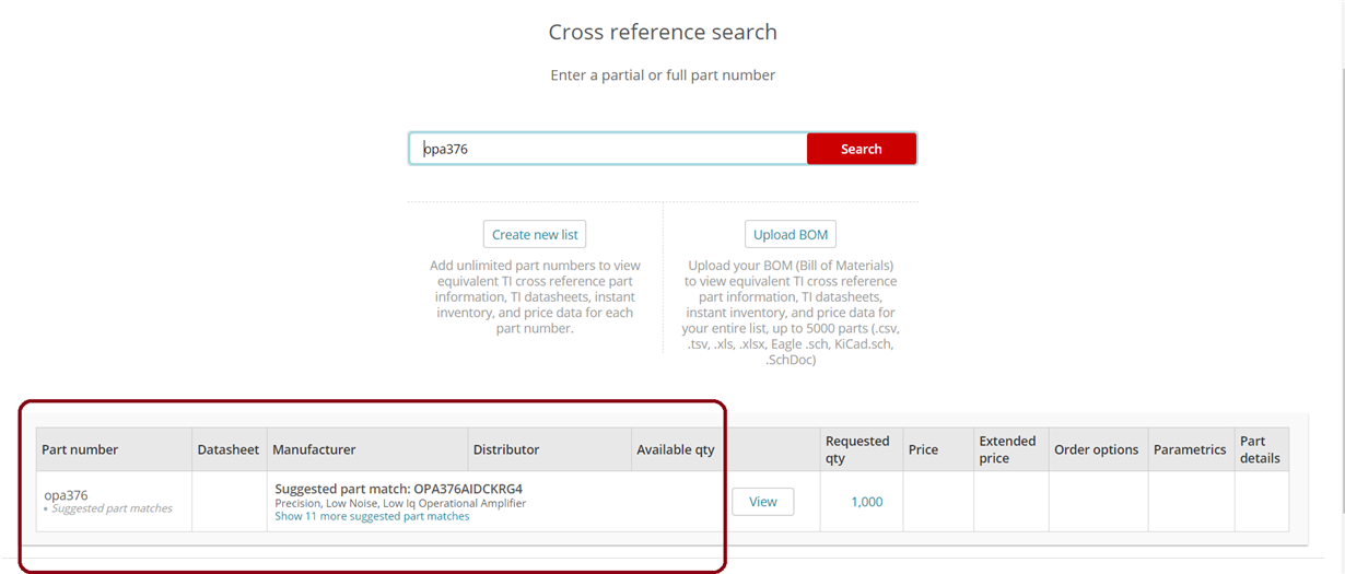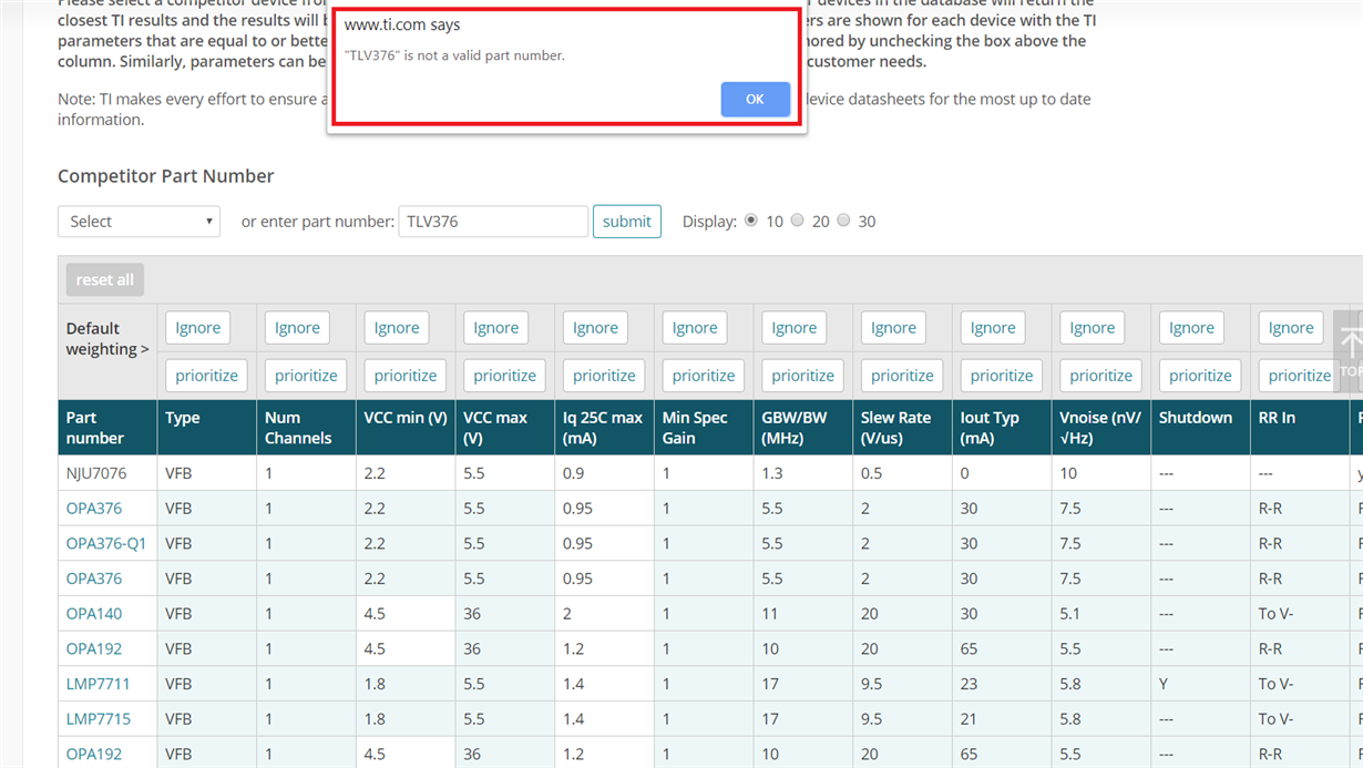 If I put the OPA376 in, it only shows me the OPA376, the older tool was handy to find close TI parts as well,