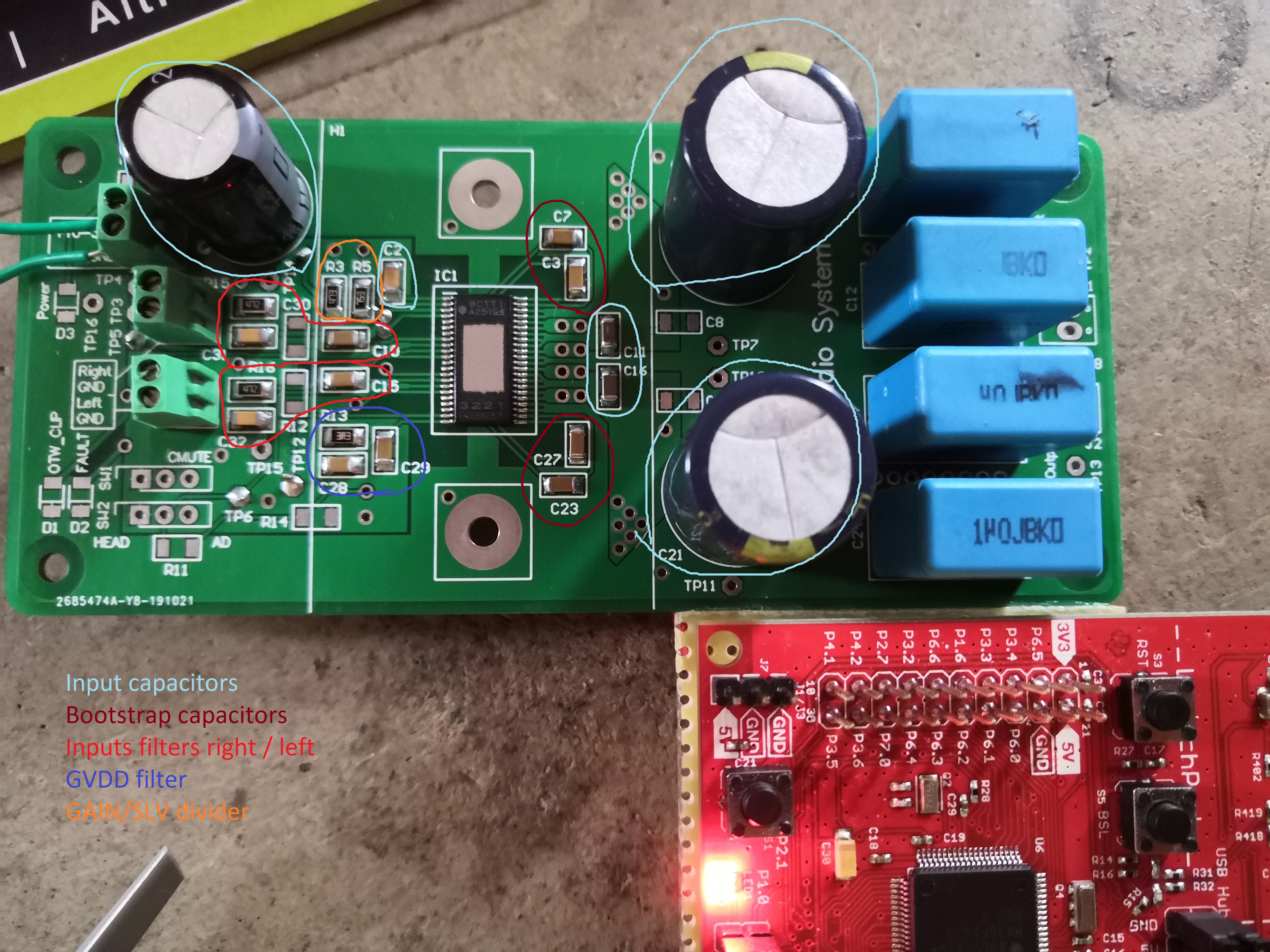 C9, C21, C4, C12, C17 and C24 are the same as on the EVM board (PHE426HB7100JR06 and EEU-FC1H102).