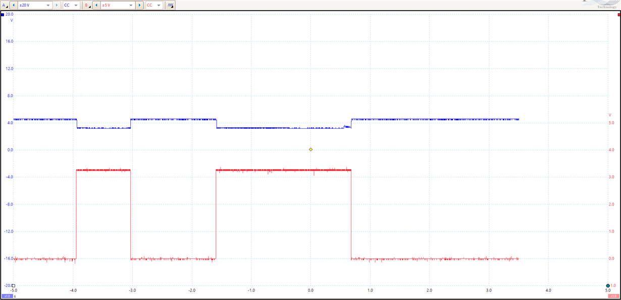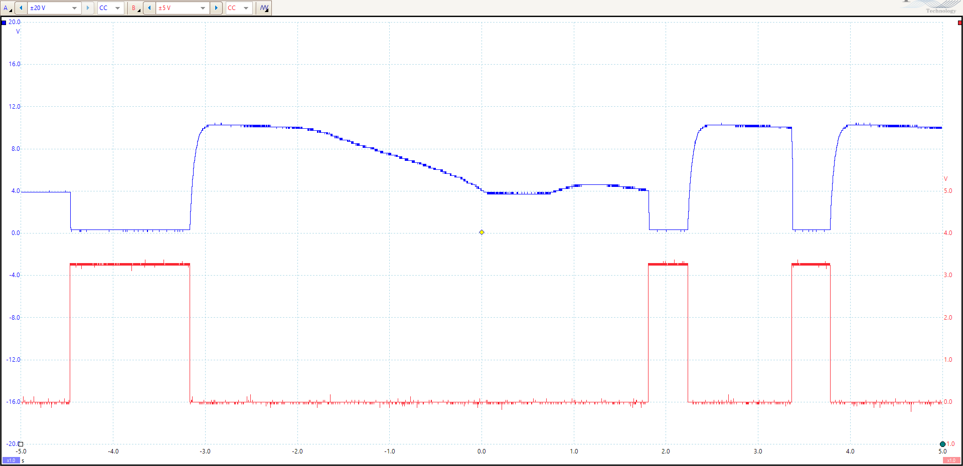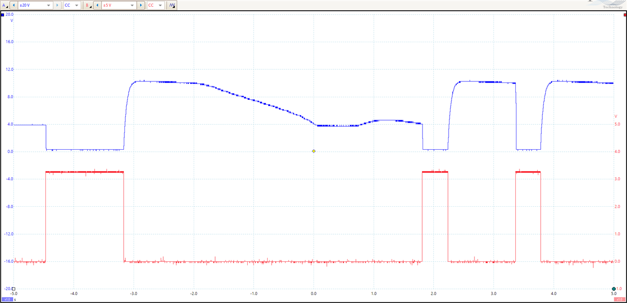 - The 5V internal LDO stays at around 4V with peaks to 4.5V but it never reaches 5V.